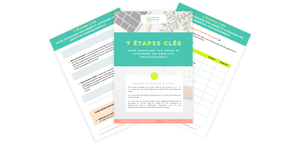 Il te suffit de renseigner ton prénom et ton adresse mail et tu auras accès immédiatement au guide en 7 étapes pour organiser ton année et atteindre tes objectifs professionnels !